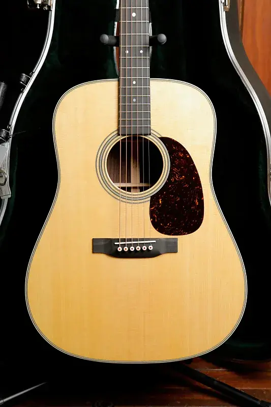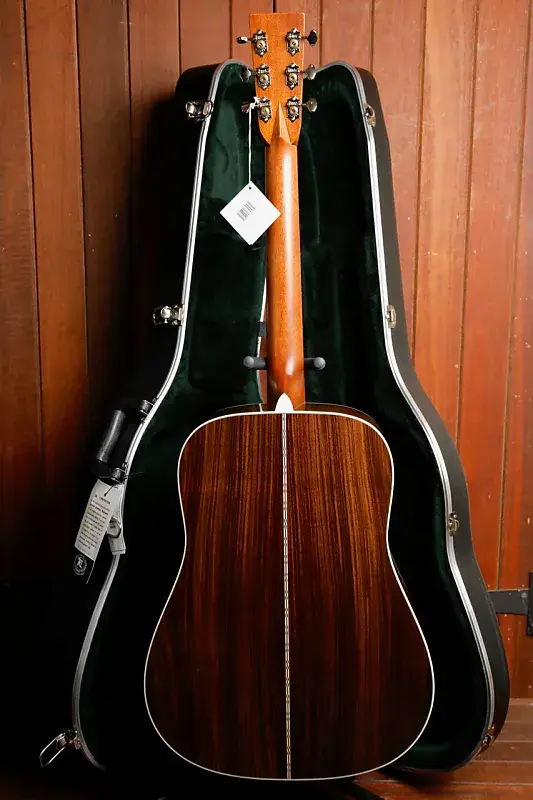 Сделанная вручную с массивной верхней декой из ели и массивными задней декой и сторонами из индийского палисандра, D-28 создает резонансный, прекрасно сбалансированный звук для всех стилей игры. Атласная шея с профилем Golden Era (GE) Modified Low Oval, высокопроизводительным сужением и длиной мензуры 25,4 дюйма обеспечивает плавность и легкость игры. С античным белым окантованием, грифом из черного дерева с перламутровыми точечными вставками, мостом из черного дерева с костяными колками и никелевыми открытыми колками D-28 сочетает в себе вечное мастерство и современную играбельность. D-28 - это гитара, которой можно доверять, чтобы раскрыть творческую личность внутри вас.