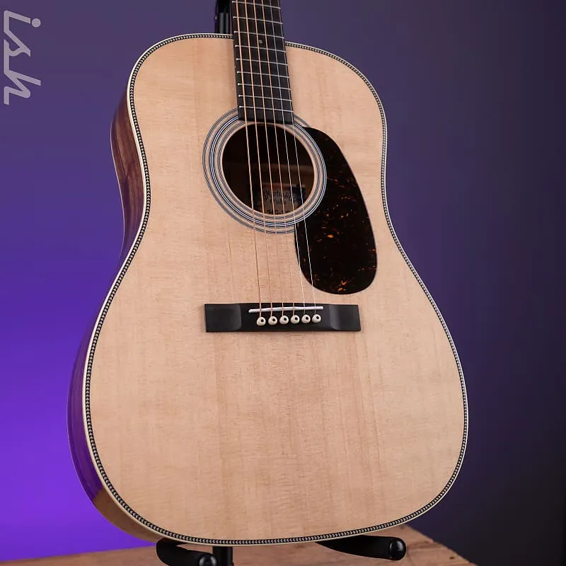 Без увлечения гавайской музыкой в 1920-х и начале 30-х годов, можно с уверенностью сказать, что современная акустическая гитара со стальными струнами, вероятно, не существовала бы. Именно эта связь была обнаружена Крисом Мартином IV во время исследования истории гавайской музыки и ее значения для инноваций и успеха компании Martin Guitar. Гитары, созданные для поддержки этой моды, привели к появлению моделей «Золотой эры», которые мы знаем и любим сегодня, таких как культовая Dreadnought. Вдохновленная винтажными моделями того времени, новая Martin O’ahu HG-28 является данью уважения этому периоду - доступной формой корпуса для линейки Martin, выполненного из цельного гавайского ковы с огненной текстурой на спинке и боках и цельной еловой деки для прекрасно сбалансированного звучания. Помимо внешнего вида, каждый, кто возьмет эту гитару в руки, сразу заметит, насколько она удобна. Как новый, но старый друг. Дебютируя как часть семейства инструментов Martin O’ahu, Martin O'ahu HG-28 является лучше всего описывается как уменьшенная 14-ладовая гитара типа Dreadnought с покатыми плечами и глубиной корпуса, сравнимой с моделью 000, идеально подходящая для музыкантов, которые любят звук Dreadnought, но хотят более удобный размер. Гриф с короткой мензурой и сатиновой отделкой, с профилем Golden Era modified low oval, обеспечивает плавное и комфортное ощущение при игре. Martin O’ahu HG-28 легко играется с низким строем струн и прекрасно подходит как для стандартного строя, так и для нескольких открытых настроек slack key, например, открытой G, которая широко используется в гавайской гитарной музыке. Яркая отделка herringbone и антикварная белая окантовка добавляют нотку винтажного очарования, напоминая о ранних гавайских гитарах Martin. С Martin O’ahu HG-28 компания Martin готова писать музыкальную историю - на этот раз в ваших руках.