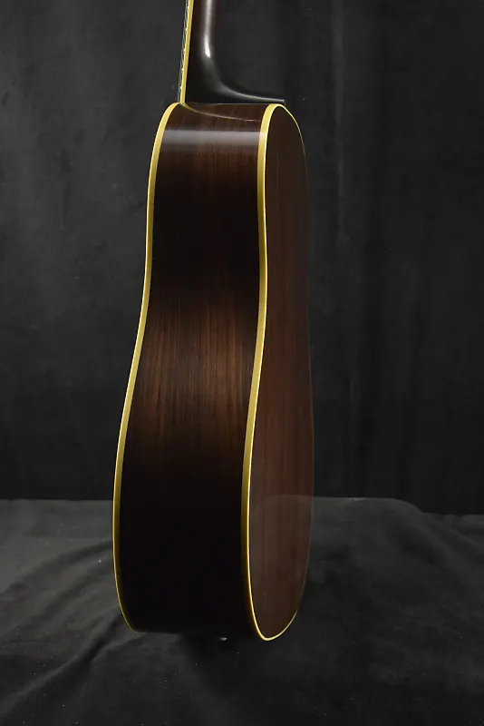 Во времена, когда культурный оптимизм был низок, Gibson придумала новую линию «улучшенных» инструментов; в эту линейку входил Advanced Jumbo. Из-за низких объемов производства с 1936 по 1939 год, эта модель в значительной степени оставалась незамеченной, несмотря на превосходное звучание и показатели. Gibson Acoustic Custom Shop с радостью вновь предлагает Gibson 1936 Advanced Jumbo, оснащенную верхней декой из термически состаренной красной ели Adirondack, задней деки и обечаек из розового дерева, а также премиальными колками Waverly. 1936 Advanced Jumbo возвращает весь тон и престиж, из-за которых этот инструмент был столь желанным для музыкантов и коллекционеров.
