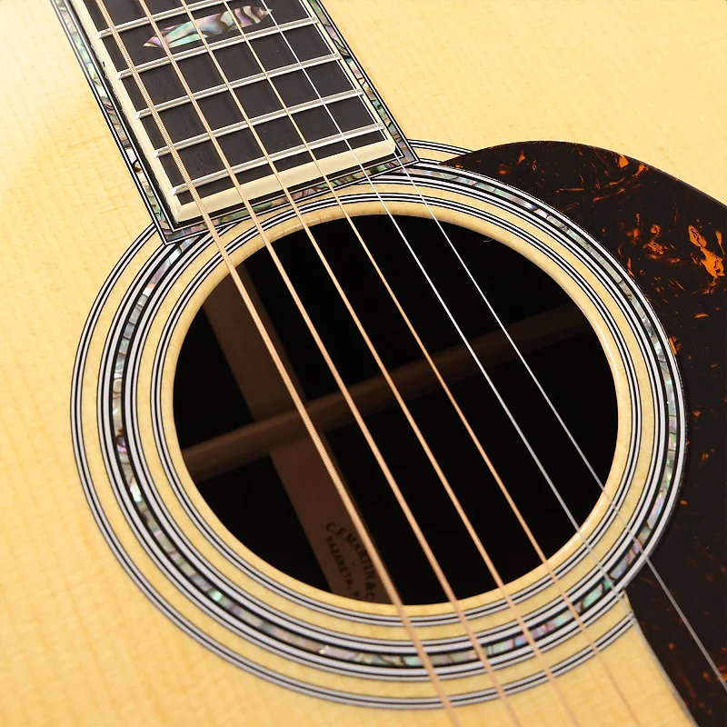 Martin D-45 - это надежное сочетание мощности и изысканности, созданное для музыкантов, которые ищут смелое звучание и потрясающие визуальные детали. Это самая украшенная модель среди всех стилей и отделок Martin. Размер корпуса Dreadnought обеспечивает громкий, пронзительный звук с мощными басами, чистыми верхами и насыщенными обертонами, что делает ее идеальной как для мощного перебора, так и для сложных арпеджио. Созданная вручную с массивной верхней декой из ели и цельными сторонами и задней декой из восточного индийского палисандра, D-45 дает резонансный, сбалансированный звук, подходящий для всех стилей игры. Глянцевая шея из настоящего махагони с профилем Golden Era (GE) Modified Low Oval, высокопроизводительным сужением и мензурой 25,4" обеспечивает плавную игру и точность. Украшенная замысловатыми деталями из перламутра, D-45 оснащена гексагонами. инкрустации на связанном эбеновом грифе, мерцающая розетка и перламутровая отделка на верхней дека, которая элегантно обвивает гриф. В комплекте антикварная белая окантовка, эбеновый бридж с костяными колками и золотые открытые механические колки.