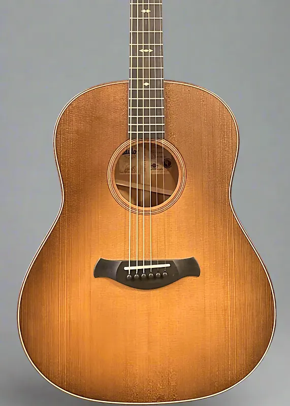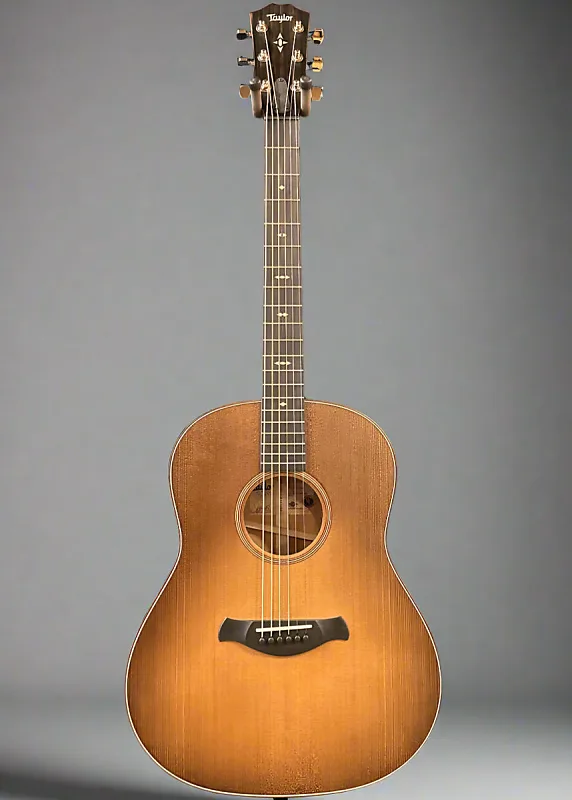 Топ Silent Satin Wild Honey Burst с корпусом Blackwood Stain, корпус dreadnought Grand Pacific с округлым плечом, верхняя дека из торрефикованной ели Ситка, одинарная розетка из черного дерева/сапеле/клена, V-образная раскладка с Relief Rout, боковые стенки и задняя дека из тропического красного дерева, окантовка из сапеле, гриф из западноафриканского эбенового дерева Crelicam с инкрустацией Grained Ivoroid Arrowhead на грифе из тропического красного дерева, длина мензуры 25,5”, ширина у стопки 1 3/4”, а также жесткий футляр Taylor Deluxe Western Floral.