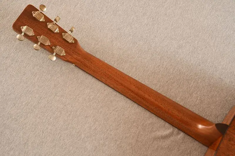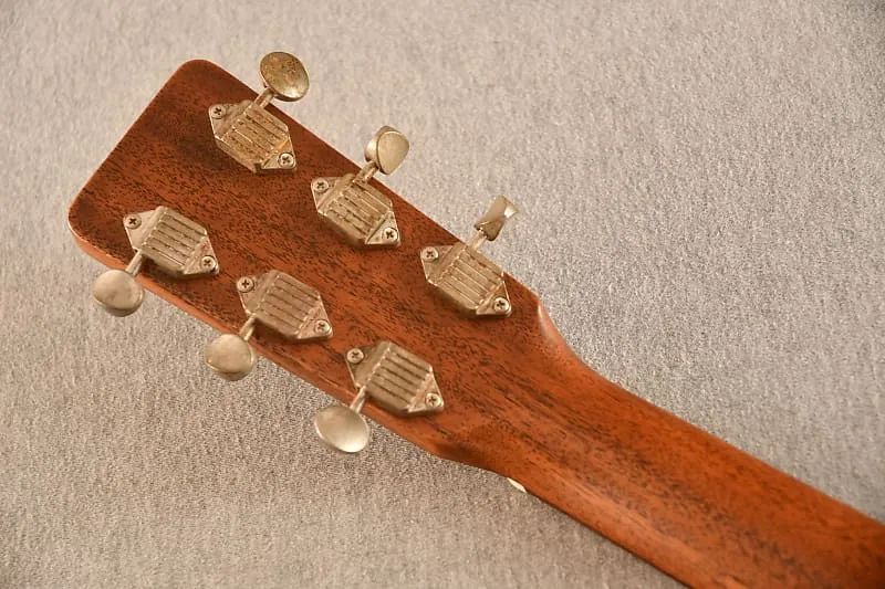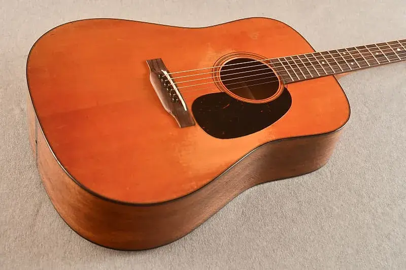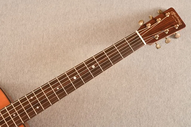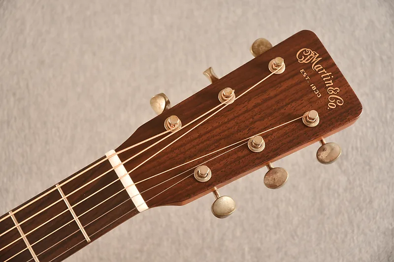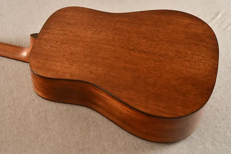 Верхняя дека отпечатана так, чтобы повторять изношенную эстетику оригинального D-18 1955 года, придавая этой гитаре винтажный вид и уникальную визуальную историю, которая дополняет ее звук.