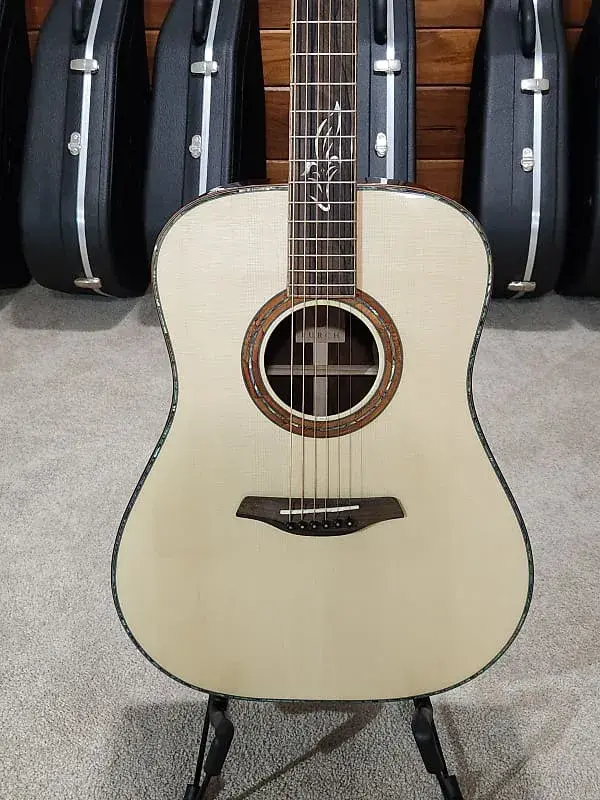 Дека защищена прозрачной накладкой- pickguard, которая позволяет естественной красоте древесины сиять. Накладка спроектирована так, чтобы не влиять на тональные качества инструмента саундборд.