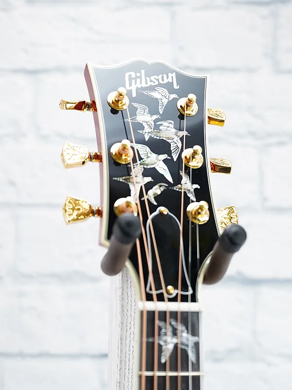 Модель Doves in Flight сочетает в себе черты легендарного голубя с одними из лучших декоративных работ в отрасли. На Doves in Flight изображены 28 индивидуально выгравированных инкрустации голубей - семь на голове грифа, 16 на грифе, три на защитном кожухе медиатора и две на бридже - каждая со своим оригинальным дизайном. На каждой ручке тюнера нанесена ручная гравировка для полной детализации. Теперь ручная сборка с использованием премиального черного дерева на грифе и бридже.