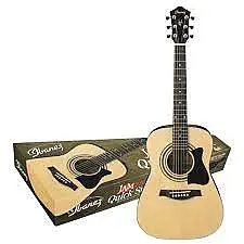 Особенности акустической гитары Ibanez IJV100S с цельной декой: Гитара с корпусом Dreadnought (черная или натуральная глянцевая отделка), верхняя дека из цельной ели, корпус и стороны из красного дерева, гриф из красного дерева, хромированные литые колки, порожек и седло Ivorex II, колки Advantage. В комплект также входят: сумка для гитары, ремень, электронный тюнер, обучающее DVD, запасные струны, медиаторы, сумка для аксессуаров.