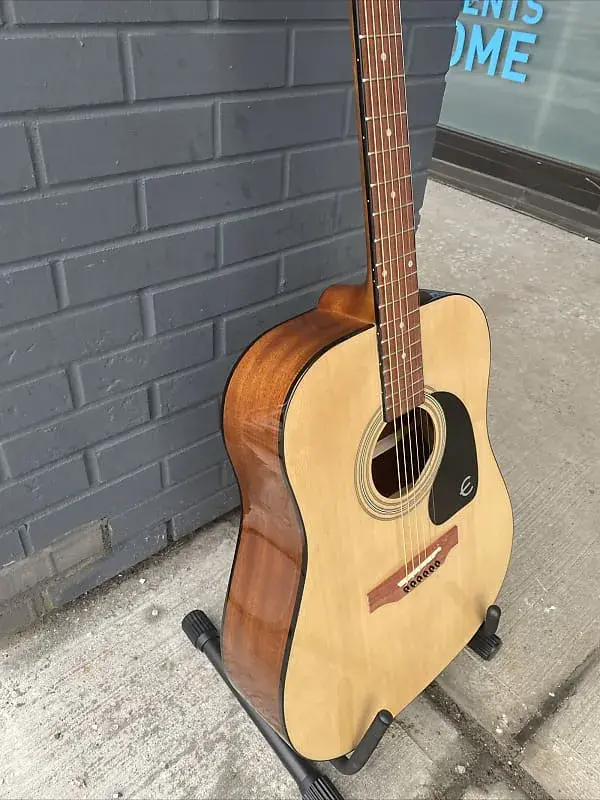 Dreadnaught Songmaker DR-100 содержит все основные элементы, которые вам нужны: корпус классической формы из красного дерева, верхняя дека из отборной ели, гриф и бридж из розового дерева делают этот инструмент отличным выбором для начинающих.