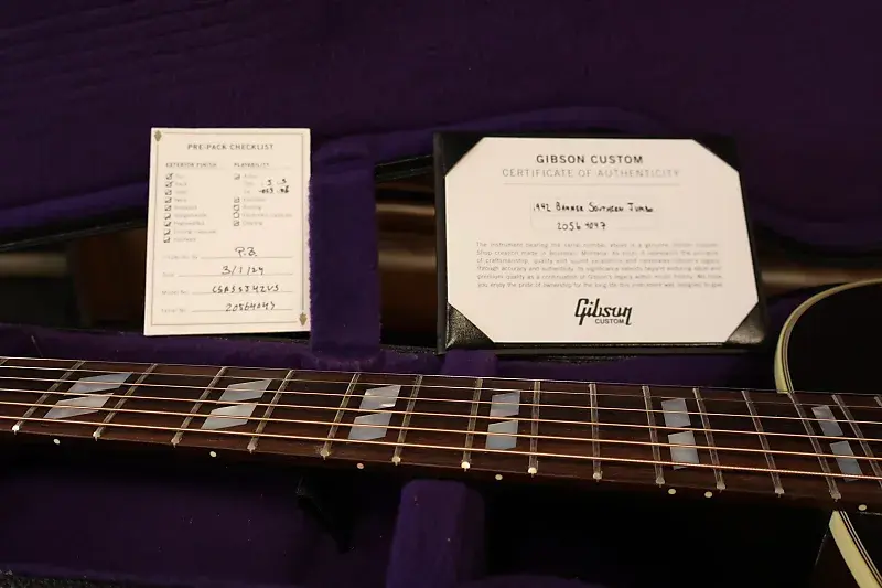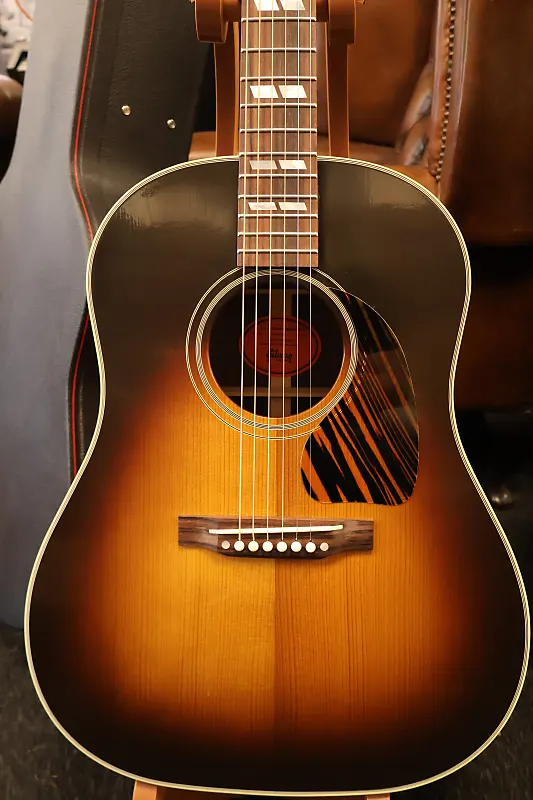 Гитара Custom Shop Historic Reissue 1942 Banner Southern Jumbo передает атмосферу винтажной акустической гитары Gibson. Верхняя дека из термически состаренной красной еловой древесины Адирондак и корпус с задней частью из палисандра обеспечивают превосходный тональный отклик и отличную удобоплеваемость. Будь то игра аккордов в первом положении или исполнение блюзовых ликов с ведением мелодии, Southern Jumbo является универсальным инструментом. Гордо демонстрируя на головке грифа девиз "Только Gibson достаточен", этот кастомный инструмент также оснащен открытым мостом, костяным седлом и порожком, а также классической шириной порожка 1,77 дюйма.