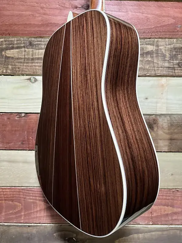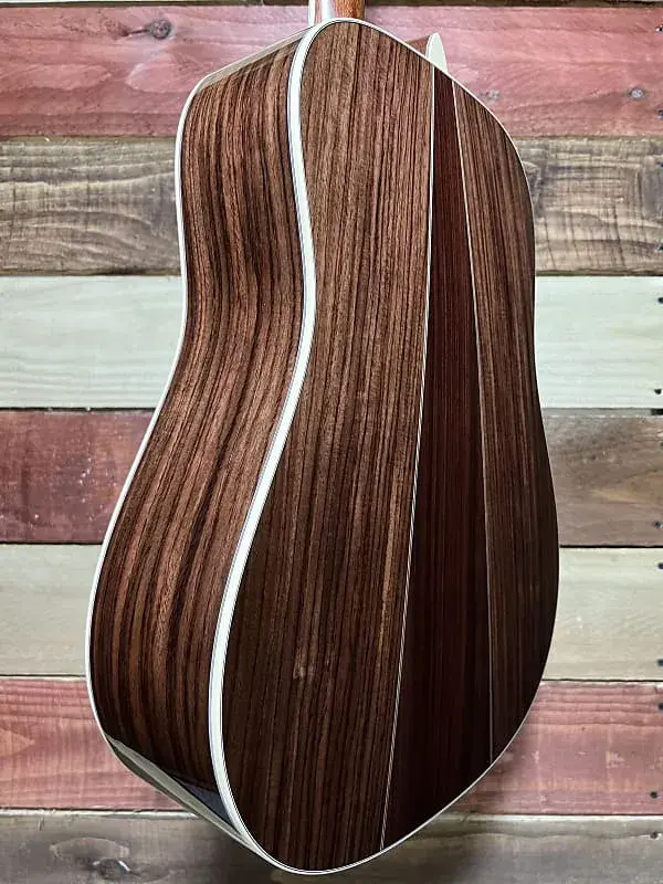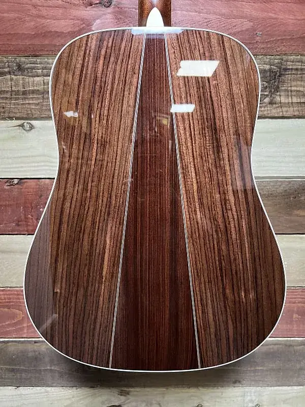 Отличительный трехсекционный задник и антично-белая окантовка грифa выделяют эту модель. Эластичные прямые ребра жесткости толщиной четверть дюйма обеспечивают баланс и мощность в любых условиях. Премиальная индийская розовое дерево, ель и классическая форма Dreadnought делают ее выбором для гитаристов, аккордистов и музыкантов от Джонни Кэша до Сета Аветта. Также доступна в отделке Sunburst и Ambertone.