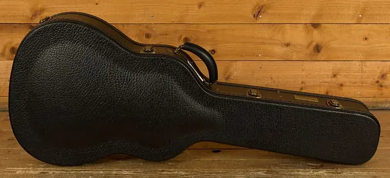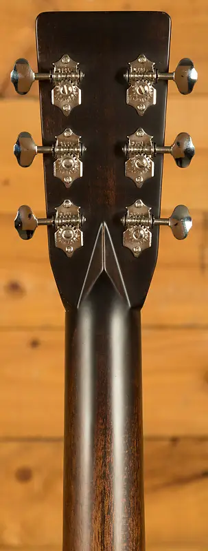 Изысканная отделка шевронной обвязкой украшает верх и заднюю дека, демонстрируя тщательное мастерство исполнения гитары. Логотип на головке грифа из перламутра и инкрустации снежинок из абалона добавляют изысканности и визуальной привлекательности. Эбеновые мостовые штифты с Инкрустация из морского уха дополнительно подчеркивает эстетическую привлекательность гитары.