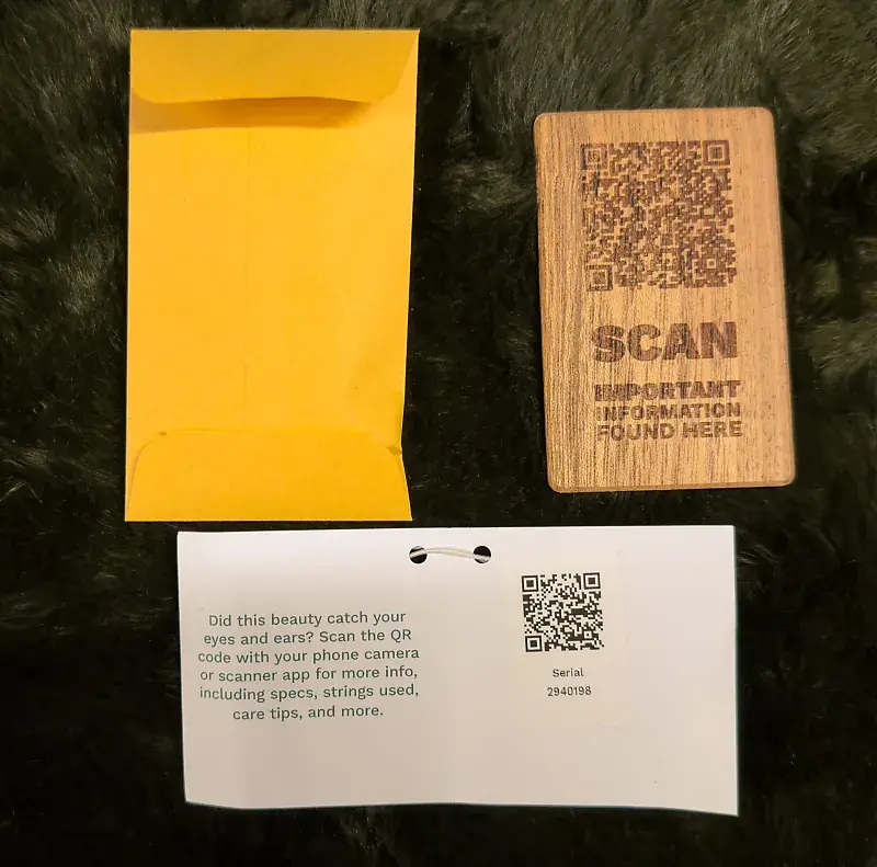 Этикетка: Бумажная этикетка с названием модели и предварительно напечатанной подписью Билли Стрингса