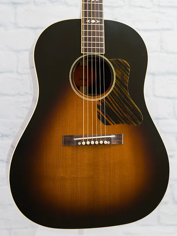 В период, когда культурный оптимизм был низким, Gibson придумала новую серию "продвинутых" инструментов; среди этих моделей был Advanced Jumbo. Из-за низких объемов производства с 1936 по 1939 год эта модель в основном оставалась незамеченной, хотя она была превосходным по звучанию и исполнению инструментом. Настроечное ателье Gibson Acoustic Custom Shop с радостью снова представляет Gibson 1936 Advanced Jumbo, оснащенную термически состаренной верхней декой из красной еловой древесины Adirondack, задней и боковыми панелями из розового дерева и премиальными колками Waverly. 1936 Advanced Jumbo возвращает весь тон и престиж, которые делали эти инструменты столь востребованными среди артистов и коллекционеров.