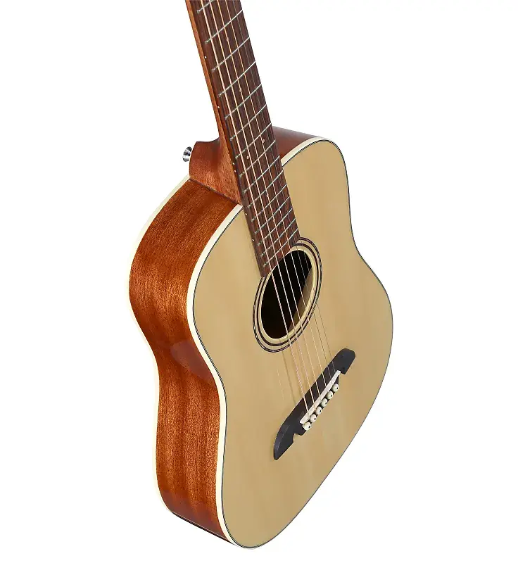 Отличный компактный дредноут для путешествий, общая длина которого составляет 34,5 дюйма, а мензура чуть меньше 23 дюймов.