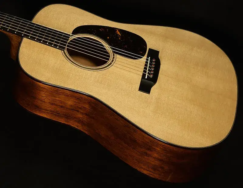 Хотя эти гитары, безусловно, обладают винтажным звучанием в избытке, каждая другая характеристика разработана для оптимизации игрового опыта. Абсолютно новый профиль грифа Vintage Deluxe имеет слегка асимметричную форму, которая идеально ложится в руку по всей длине грифа. Говоря о новинках, углеродное мостовое основание придает дополнительную громкость и силу звучания без добавления лишнего веса, который мог бы поглощать резонанс верхней дека. Легче - всегда лучше, поэтому Martin использует титановые стержни анкера, которые также способствуют сустейну и резонансу гитары. Кроме того, Martin заменил обычные деревянные мостовые колки на Liquidmetal-пины, которые легче и обеспечивают лучшее передача энергии. Все это в сумме дает более громкую, более резонансную акустическую гитару, играть на которой - настоящее удовольствие.