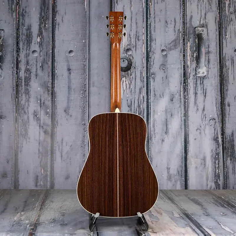 D-41 изготовлена с великолепной крышкой из ели Sitka на фоне корпусов и обечаек из розового дерева Восточной Индии, в сочетании с новым усилением Golden Era от Martin. В результате получается резонансный, сбалансированный звук с мощным, чистым и богатым обертонами тембром. Модифицированная шея GE Low Oval из настоящего махагона имеет высокопроизводительный конус и гладкую накладку из эбена с инкрустацией из гексагонального абалона.