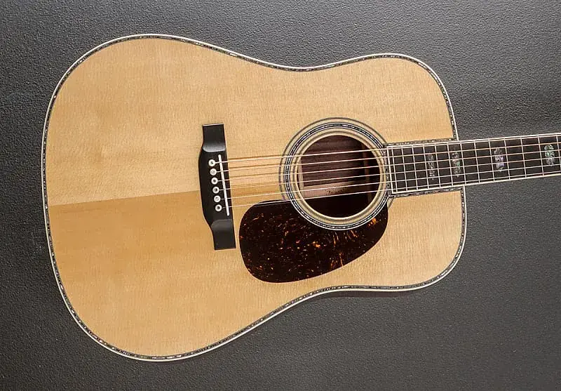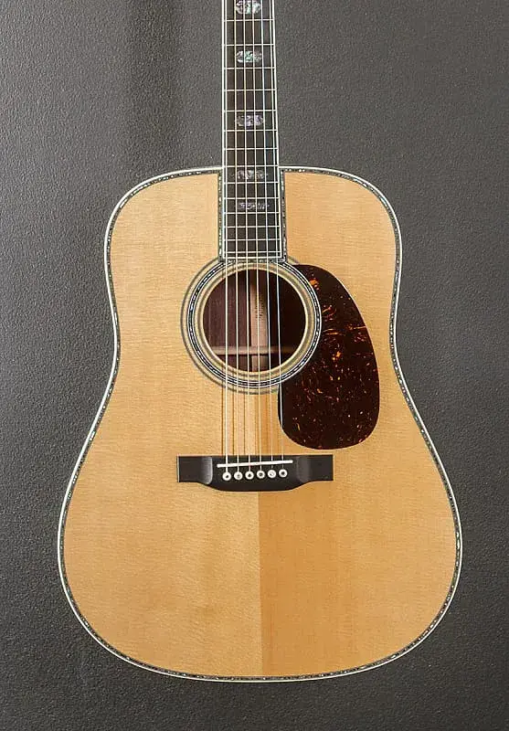 Натуральный, Глянцевая отделка верха и корпуса, Форма корпуса D-14 Fret, Топ из массива ели, Морское ушко с розеткой в несколько полос, Золотая эра с фестоном вперед смещенной вперед X-образной распоркой, Массив восточно-индийского палисандра сзади и по бокам, Античный белый переплет с морским ушком с многополосной инкрустацией сверху/сзади/сбоку, Стиль 45 с черной полосой сзади, Модифицированный низкий овальный цвет Golden Era с высокопроизводительным коническим грифом из махагани, Переплетенный гриф из черного дерева с маркерами положения Abalone Style 45 Hexagon, длина мензуры 25,4 дюйма, ширина порожка 1 3/4 дюйма, открытый гровер настройщики для гитар, с жестким футляром