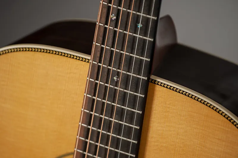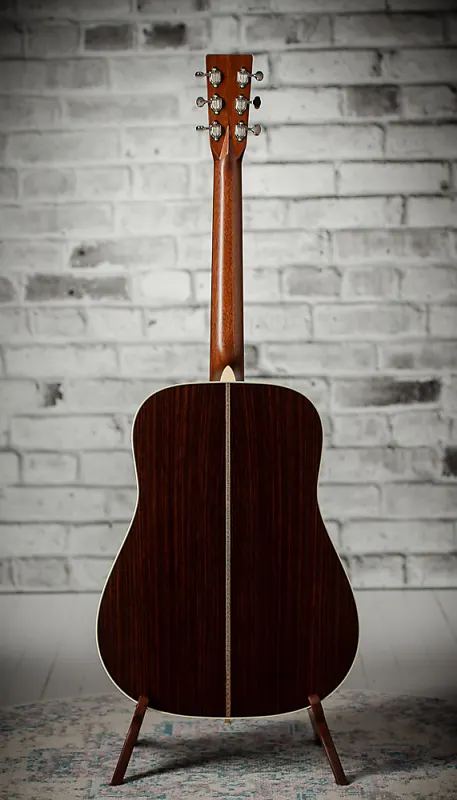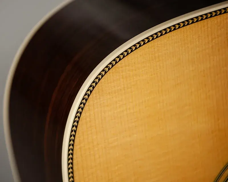 Вдохновленная ценным инструментом Билли Стрингса D-28 1940 года, гитара Martin D-28 Billy Strings привносит современный оттенок в классический довоенный дизайн, включая функции, адаптированные к захватывающему стилю игры Билли. Этот фирменный дредноут отличается уникальной длиной мензуры 25 дюймов, что снижает натяжение струн для быстрой, сложной игры и выразительных сгибов - идеально подходит для молниеносных рифов Билли. С шириной порожка, немного больше, чем у его довоенного Martin, и видоизмененной низкой овальной матовой грифовой частью, гитара обеспечивает улучшенный комфорт и скорость, идеально для музыкантов, которым важна подвижность по гриффу. Цельная индийская розовое дерево для корпуса и боковин и еловая дека создают полный, резонансный звук с богатым басом, а смелая отделка «елочка», антикварный тонер и антикварно-белый цвет завершают образ. обвязка добавляет винтажный шарм. Никелированные закрытые колки, эксклюзивно для Martin, и эбеновая накладка грифa с инкрустацией из абалона в виде ромбов и квадратов дополняют внешний вид и характеристики гитары. Это идеальное сочетание традиционного мастерства и современной удобности игры, как и стиль Билли, не поддающийся жанрам. Каждая гитара имеет индивидуальную бумажную этикетку с его заранее напечатанной подписью и графикой.