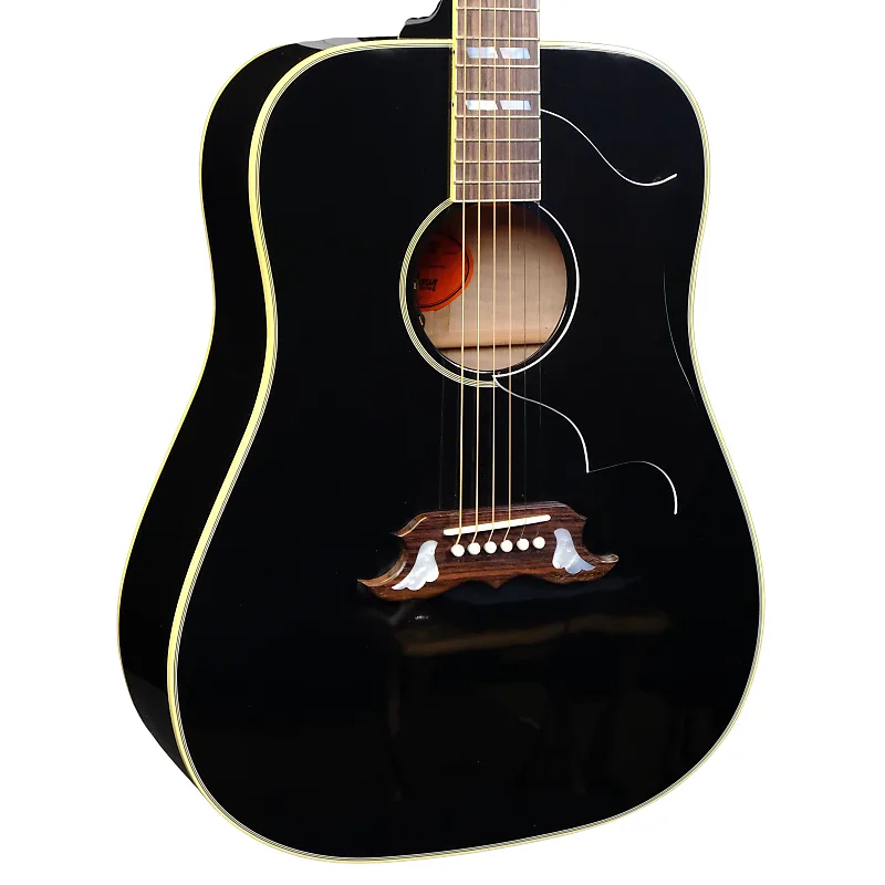 Gibson Elvis Dove - это не только внешний вид; она создана для мощного и выразительного звучания, которое может заполнить комнату или прорезать микс. Верхняя дека из массива ели Ситка обеспечивает широкий динамический диапазон и чистый, сильный звук, а спинка и обечайки из клена добавляют сфокусированный, яркий тон с меньшим количеством обертонов и отличной проекцией. Эта комбинация создает звук, подобный "лазерному лучу", делая ее любимец для живых выступлений, когда нужно, чтобы инструмент звучал громко на фоне полной группы. Гриф из махагони добавляет теплоту общему тембру, а накладка из палисандра обеспечивает гладкую поверхность для игры. Независимо от того, играете ли вы переборами или ведете мелодию, эта гитара обеспечивает сфокусированный, выразительный звук с долгим сустейном и четкой атакой.