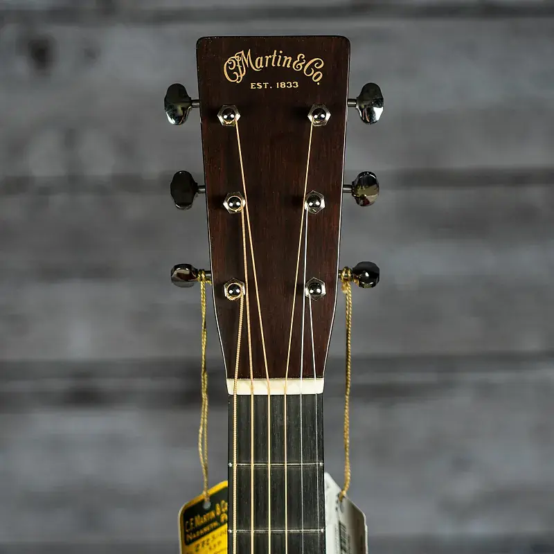 «1937 год был отличным годом для гитар с идеальным штормом мастерства, инноваций и материалов. Эта копия D-18 1937 года выпуска Authentic Series остается верной оригиналу благодаря конструкции из клея для кожи и исторически точным деталям. Эта гитара имеет заднюю и боковые стороны из натурального красного дерева и верхнюю часть из адирондакской ели, а также имеет узор распорок Authentic примерно 1937 года. Он включает в себя соответствующие периоду «18» назначения в аутентичном стиле и ствол шеи Authentic и пятку, а новинку этого года - более точный профиль тела, основанный на формах дредноутов из ранней золотой эры истории Martin.