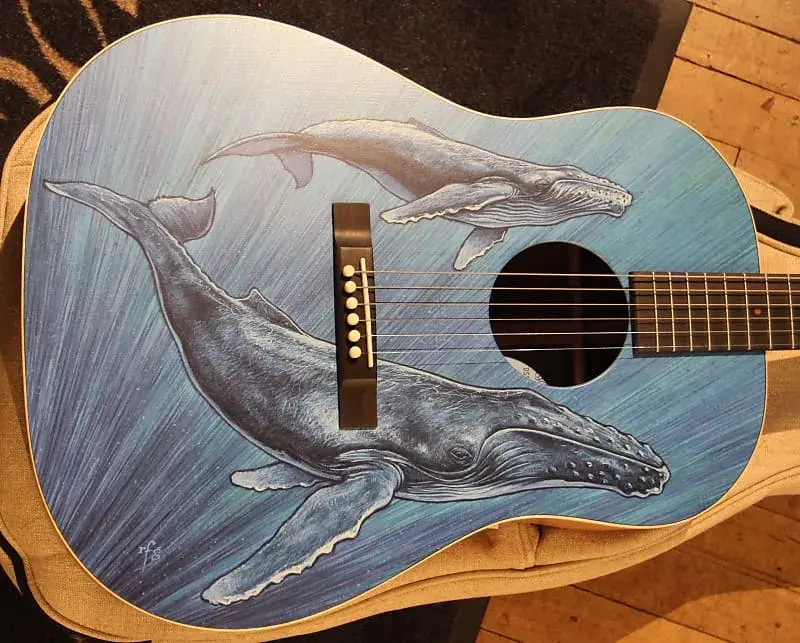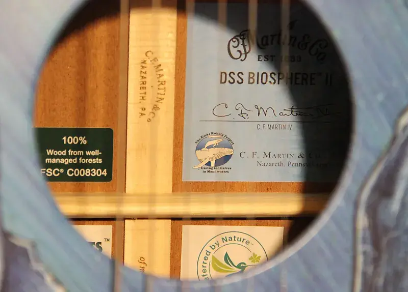 Посвященная устойчивому развитию и сохранению нашей планеты для будущих поколений, компания Martin Guitar гордится тем, что в этот День Земли она вновь призывает к действию с совершенно новой моделью DSS Biosphere II. Третья модель в серии Martin, посвященной Дню Земли, демонстрирует еще одно потрясающее произведение искусства от признанного художника Роберта Гетцля, перенося вас к водам у побережья Гавайев. Эта модель является данью уважения проекту Keiki Kohola - Caring for Calves in Maui Waters, некоммерческой организации, которая способствует защите пар горбатых китов - матери и детеныша - во время их пребывания в гавайских водах. Компания C. F. Martin & Co. сделала щедрое пожертвование на поддержку этой инициативы. DSS Biosphere II также сертифицирована FSC, полностью лишена пластика и будет украшена знаком колибри Preferred by Nature. Это дредноут с сатиновой наклонной дека, обеспечивающий теплое и мягкое звучание, дополненное мощными средними частотами, ясными и воздушными высокими и впечатляющим объемом. У всех живых существ есть своя песня. С DSS Biosphere II компания Martin надеется вдохновить осознание необходимости защиты окружающей среды и того красивого звучания, которое она создает.