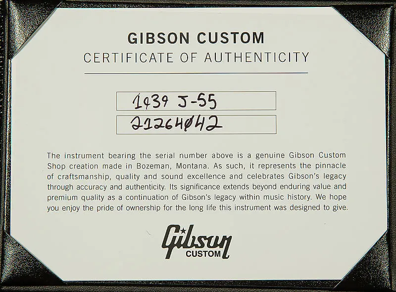 Ель Adirondack использовалась Gibson в тридцатые годы, но винтажные J-55 имеют преимущество «раскрытия» с течением десятилетий игры. Поэтому, чтобы помочь этим современным версиям звучать больше как винтажные инструменты, Gibson термически обрабатывает верхние деки. Удаляя лишнюю влагу из древесины, замечательные специалисты Gibson Montana могут имитировать тональные свойства старого дерева из одной из этих "обыгранных" старинных гитар. В результате J-55 1939 года обладает удивительной открытостью и теплотой.