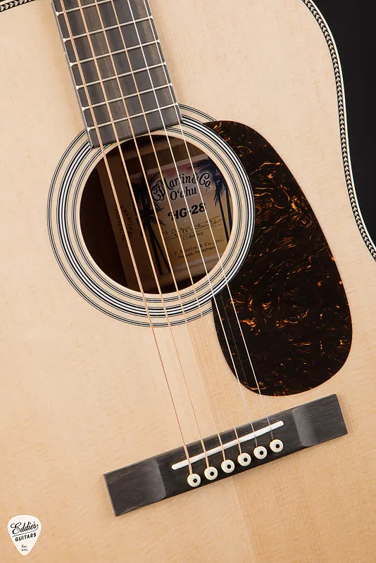 Без увлечения гавайской музыкой в 1920-х и начале 1930-х годов можно с уверенностью сказать, что современная акустическая гитара со стальными струнами, вероятно, не существовала бы. Именно такую связь обнаружил Крис Мартин IV, исследуя историю гавайской музыки и ее значение для инноваций и успеха компании Martin Guitar. Гитары, созданные для поддержки этого увлечения, привели к моделям «Золотой эпохи», которые мы знаем и любим сегодня, таким как культовая Dreadnought. Вдохновленный винтажными моделями того времени, новый Martin O’ahu HG-28 является данью уважения той эпохе - это удобная форма корпуса для линии Martin, выполненная из цельного резного гавайского дерева коа (спинка и боковины) и с цельной еловой декой для красиво сбалансированного звука. Помимо внешнего вида, любой, кто возьмет эту гитару в руки, сразу заметит, насколько она удобна. Как новый старый друг. Дебютируя в составе семейства инструментов Martin O’ahu, Martin O'ahu HG-28 лучше всего описать как меньшую 14-ладовую Dreadnought с наклонными плечиками и глубиной 000, идеальную для игроков, которые любят звучание Dreadnought в более удобном размере. Коротко-струнная сатиновая шейка с профилем Golden Era модифицированным низким овалом обеспечивает плавное и комфортное ощущение при игре. Martin O’ahu HG-28 легко звучит при низком строе и отлично подходит как для стандартного строя, так и для нескольких вариантов открытого строя slack key, например, открытой G, которая широко используется в гавайской гитарной музыке. Смелая отделка «елочкой» и антикварная белая окантовка добавляют нотку винтажного очарования, напоминающего о первых гавайских гитарах Martin. С Martin O’ahu HG-28 компания Martin готова создавать новую музыкальную историю - теперь уже в ваших руках.