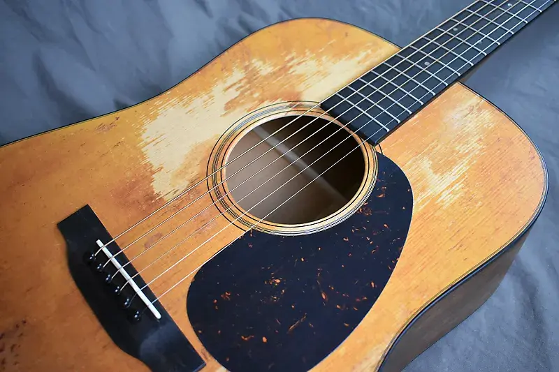 D-18 StreetLegend использует технологию печати ArtGuitar компании Martin для воссоздания уникального характера одной из классических дредноутов в музее Martin. Разработанная вместе с Mimaki, технология ArtGuitar позволяет Martin печатать лак с цифровой точностью. На D-18 StreetLegend рисунок износа цифровым способом наносится на сатиновое лаковое покрытие. Все это лак, и гитара в остальном остается новой и идеальной (без искусственного старения или преднамеренного повреждения) - это совершенно новая D-18 с другим характером.
