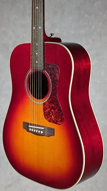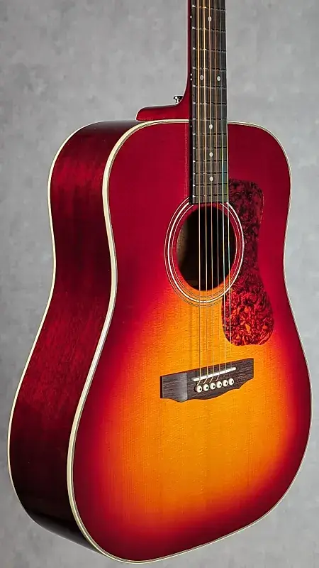 Модели D-140 от Guild - это дредноуты, ориентированные на высокую производительность, обладающие всеми характеристиками игры, звучания и настроения, которые сделали Guild любимым брендом для взыскательных музыкантов более 70 лет. D-140 Cherry Burst предлагает новый цветовой вариант для всегда популярной линейки D-40 и D-140, сочетая классическую отделку Cherry Burst, которая прекрасно контрастирует с окантовкой из Ivoroid и инкрустацией из перламутра на розетке и головке грифа. Премиальные характеристики, такие как полностью массивные тоновые породы, кость на седле и бридже, а также премиальный чехол Guild с микрофлисовой подкладкой, делают D-140 инструментом профессионального уровня с невероятной ценностью.
