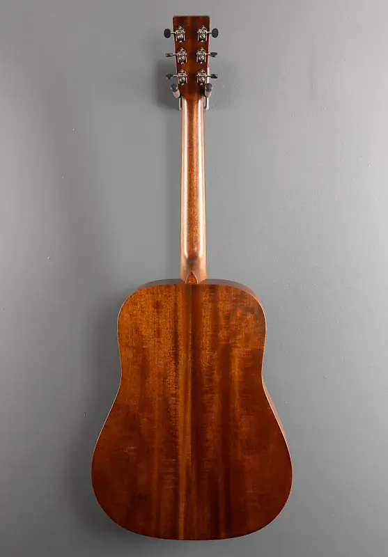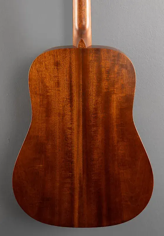 Темное красное дерево, корпус формы D-14 Fret, верх из цельного красного дерева, несрежемленный X-образный бридж, многоцветная розетка, задняя дека и обечайки из цельного красного дерева, грифовая доска из индийского палисандра с маркерами позиции из перламутра короткого узора «Алмаз и квадраты» на модифицированном грифе низкого овала с обычным сужением, длина мензуры 25,4 дюйма, ширина верхнего порожка 1 11/16 дюйма, в комплекте с жестким чехлом