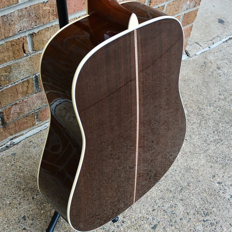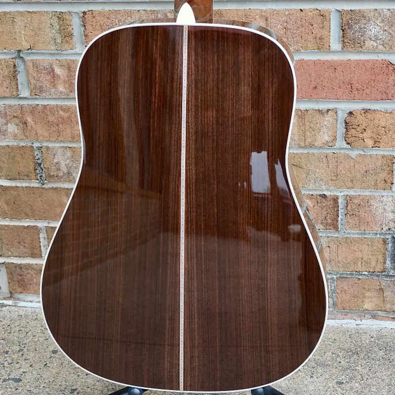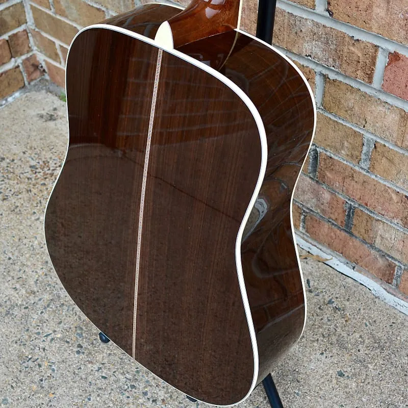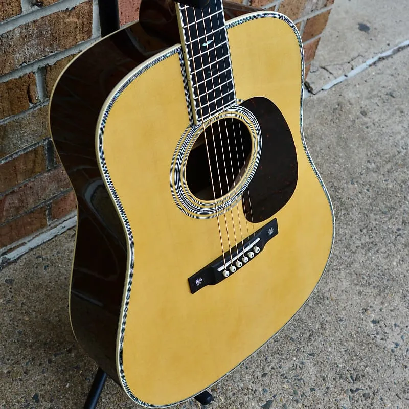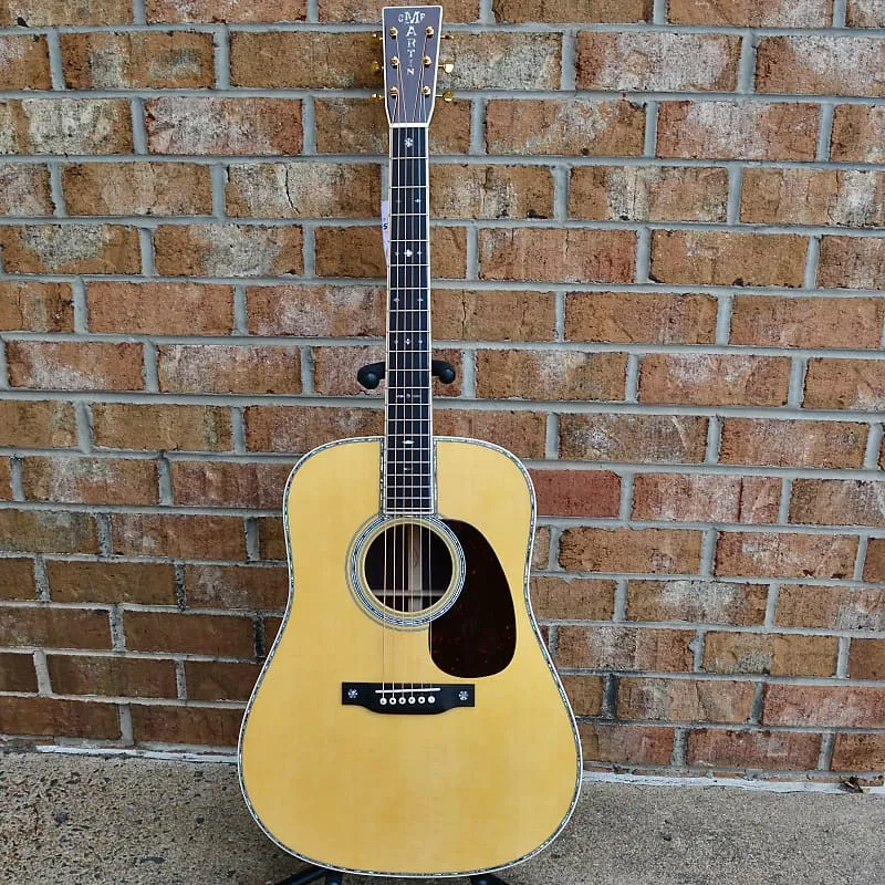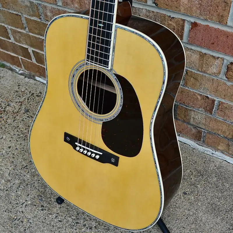 С задней панелью и обечайками из высококачественного восточно-индийского палисандра и верхом из ели, этот инструмент имеет превосходное оформление с перламутровой инкрустацией и дополнен винтажными элементами, такими как антикварная белая окантовка и открытые механизмы настройки. Массивный бас в сочетании с четкими высокими частотами и высокопроизводительная шея делают D-42 прекрасно оформленным тональным шедевром, игра на котором в течение нескольких часов превращается в легкое занятие.