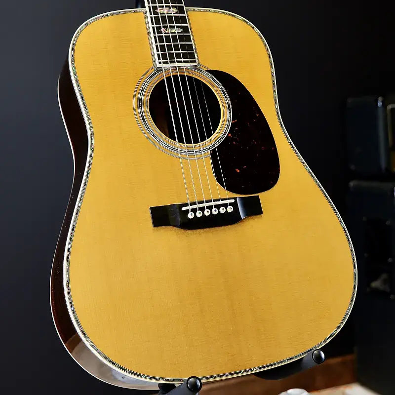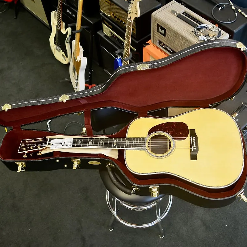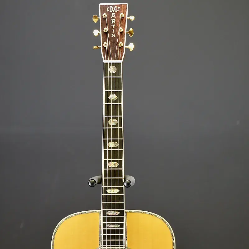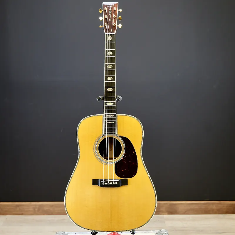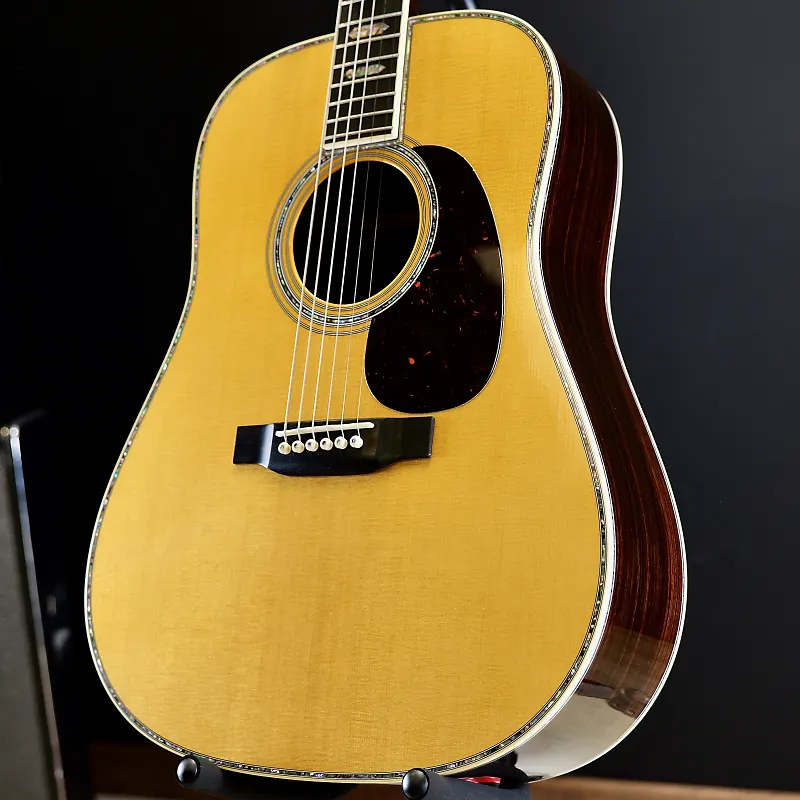 Этот оснащенный Дредноут является флагманской моделью серии Standard. Это самый изысканный из всех инструментов, оснащенный ручной инкрустацией из перламутра на поверхности, задней стороне, боках и грифе. Используются высококачественные древесные породы и все нововведения переосмысленной серии Standard, такие как сдвинутые вперед выемчатые планки, антикварная белая окантовка и высокопроизводительный гриф. Гитара, выбранная легендами, такими как Джин Отри и Нил Янг, это идеальный инструмент для любого взыскательного коллекционера или музыканта. Ничто не говорит о вашем успехе так, как D-45.