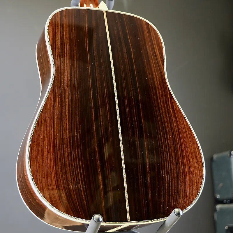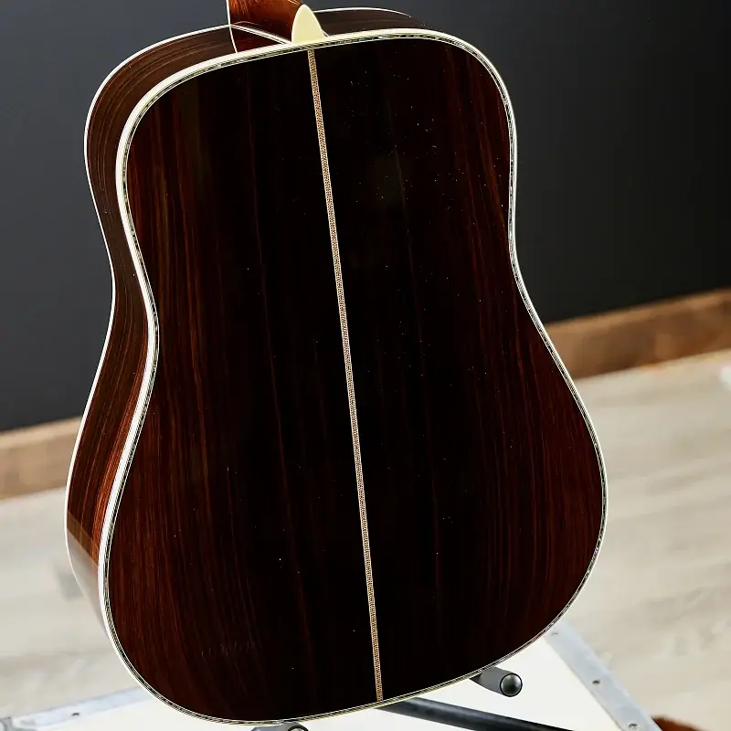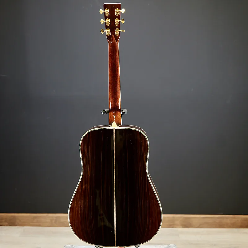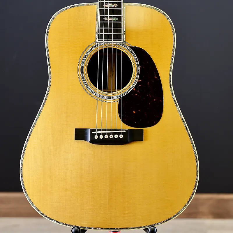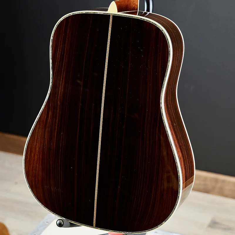 Этот оснащенный Дредноут является флагманской моделью серии Standard. Это самый изысканный из всех инструментов, оснащенный ручной инкрустацией из перламутра на поверхности, задней стороне, боках и грифе. Используются высококачественные древесные породы и все нововведения переосмысленной серии Standard, такие как сдвинутые вперед выемчатые планки, антикварная белая окантовка и высокопроизводительный гриф. Гитара, выбранная легендами, такими как Джин Отри и Нил Янг, это идеальный инструмент для любого взыскательного коллекционера или музыканта. Ничто не говорит о вашем успехе так, как D-45.