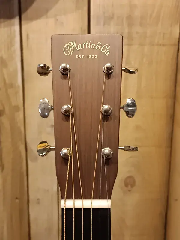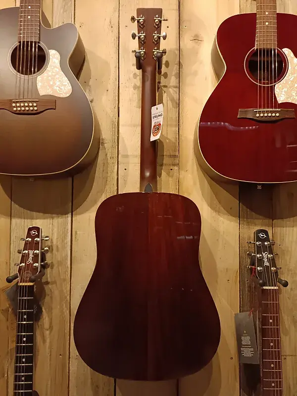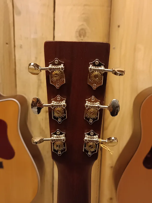 Акустическая гитара с натуральной отделкой и глянцевым лаком.