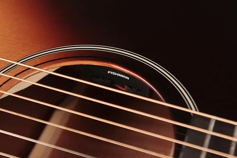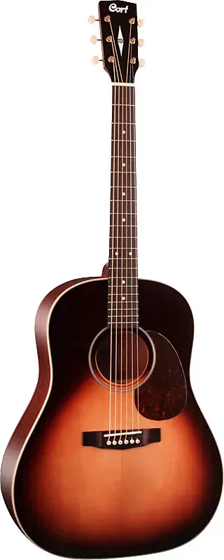 Акустическая гитара типа Dreadnought с наклонным плечом. Верхняя дека из цельного ели Ситка. Обечайки и задняя дека из красного дерева. Гриф из красного дерева. Грифовая доска из овангкола с 20 ладами. Мензура 24,75 дюйма. Бридж из овангкола. Открытые механики. Отделка Sunburst. Эквалайзер Fishman Sonitone.