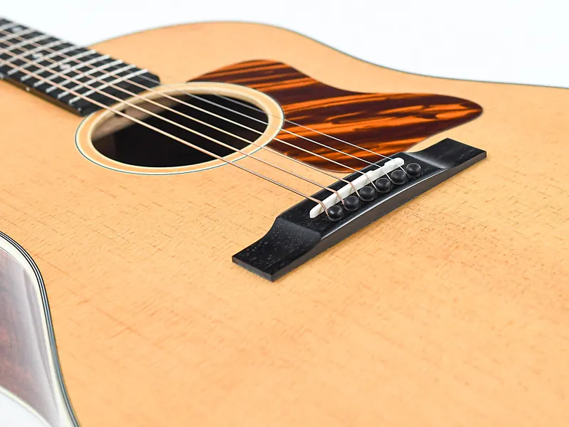 Например, у этой гитары верхняя дека изготовлена из ели ситка и обработана известным методом Thermo Cured. Это означает, что древесина подвергалась воздействию тепла и давления перед сборкой, при этом она теряет большую часть влаги. В результате гитара приобретает характер «сыгранного» инструмента и востребованные звуковые качества винтажного инструмента.