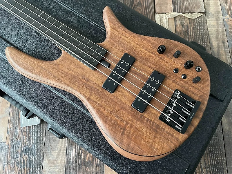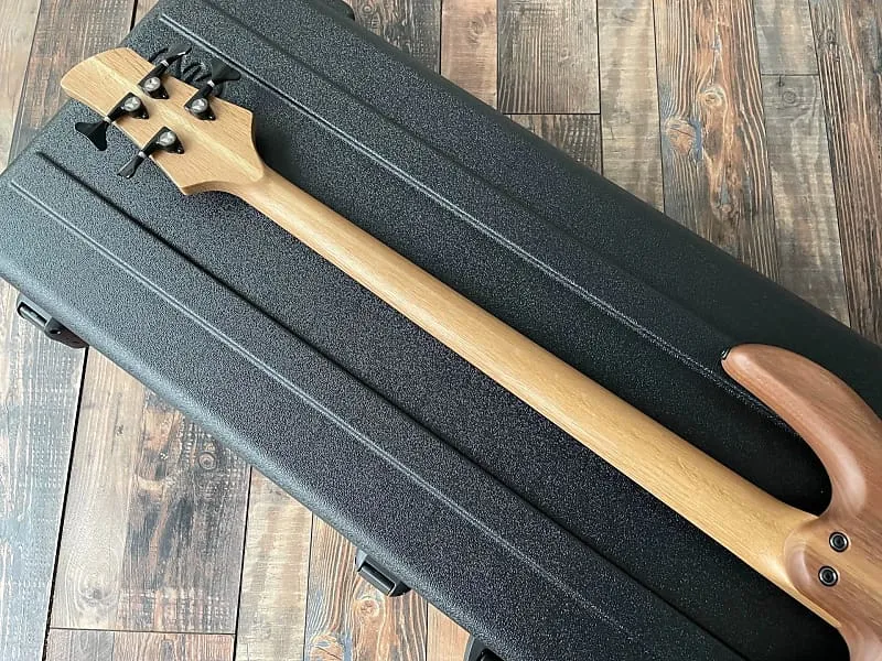 Высококачественный безладовый электрический бас Fodera серии Monarch Standard американского производства ручной работы с шпоном ореха и логотипом Fodera. Он отличается удобной горловиной, премиальными функциями и поставляется в оригинальном кейсе. Корпус изысканно обработан, а тон чистый, идеально подходит для любого выступления.
