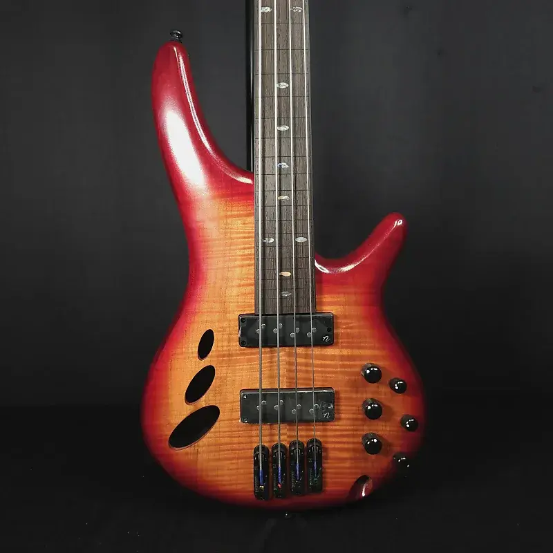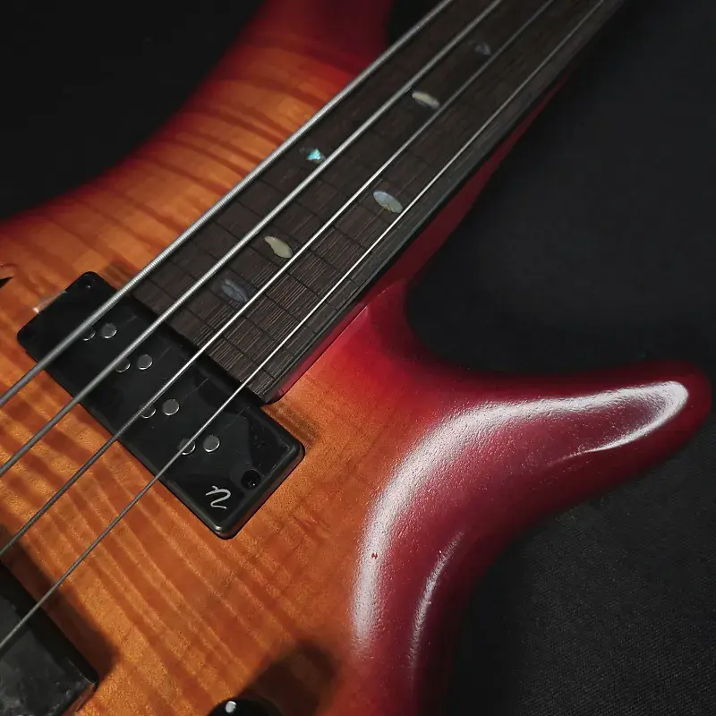 тип грифa: SRD45pc Maple/Walnut верх/корпус: Верх из экзотического клена, корпус из окоуме грифовая накладка: Ограниченная накладка из Панги Панги с овалами из перламутра ладовая доска: Безладовый бридж: AeroSilk MR5 ширина струн: 19 мм звукосъемник у грифа: Nordstrand Big Break (пассивный) звукосъемник у бриджа: Nordstrand Big Break (пассивный) эквалайзер: Ibanez 2-полосный EQ с активным контролем тембра Piezo фабричная настройка: 1G, 2D, 3A, 4E струны: D'Addario ECB81 Flatwound толщина струн: .045/.065/.080/.100 цвет фурнитуры: черный