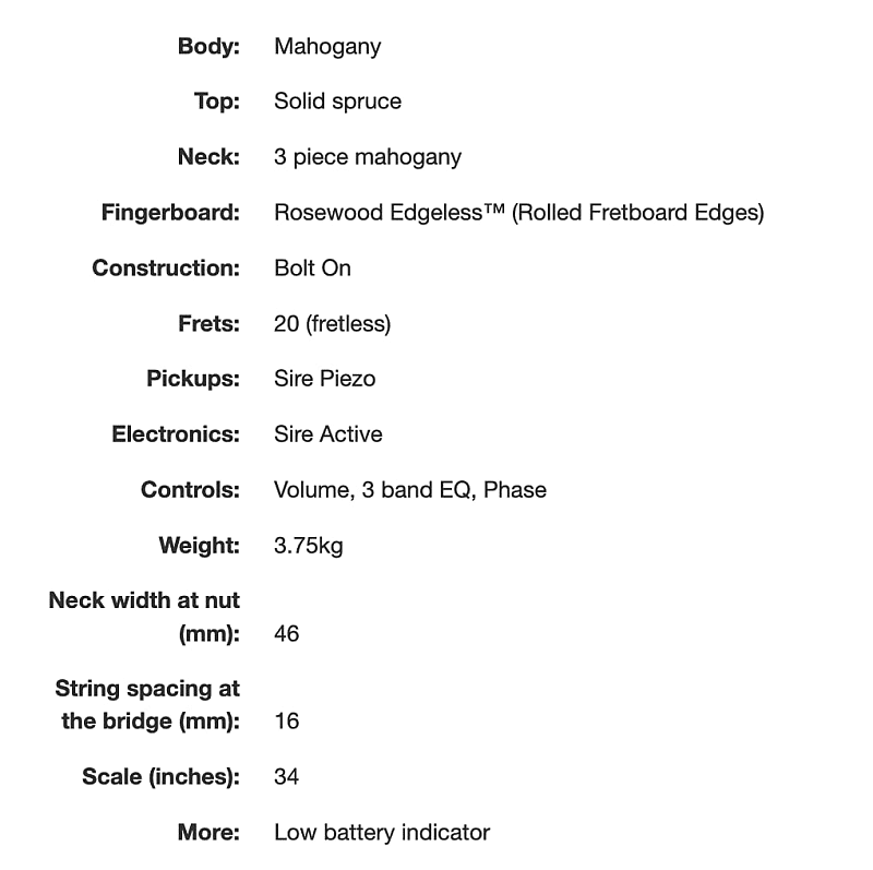 Эта модель создана для акустического звучания. Она стремится воспроизвести богатую резонансность и тона контрабаса, характерные для камерных корпусов. Это отличный выбор для тех, кто занимается акустической или гладкой джазовой музыкой. Безладовый гриф позволяет игрокам более свободно работать с нотами по всему грифу.