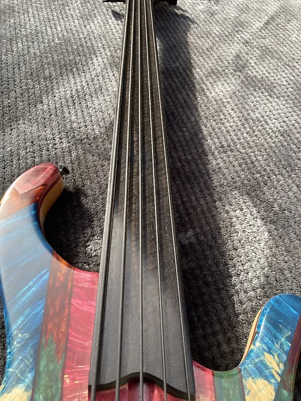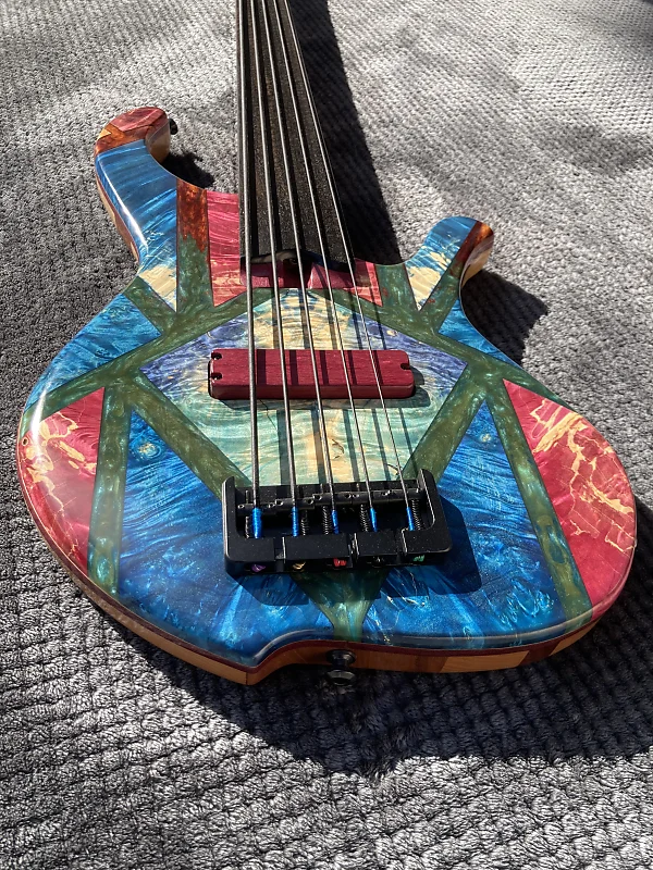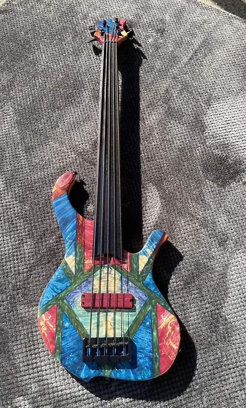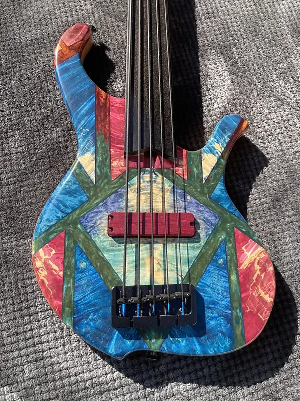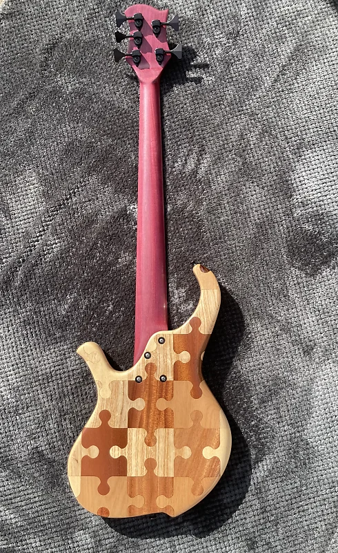 * Это очень особенная сборка LowDown, которая теперь доступна для покупки. Этот корпус бас-гитары был собран из кусочков головоломки ручной работы, сделанных из отрезков многих предыдущих сборок кузовов LowDown. Горловина представляет собой фантастический кусок фигурного Пурпурного сердца с таким же красивый кусок фигурного эбена для накладки грифа. Верхняя дека из карельской березы почти как витраж по внешнему виду… Очень впечатляюще вживую. На верхнем роге есть 2 небольших дефекта в вставках из ольхи, которые были запечатаны. При необходимости могу сфотографировать и прислать. Действие струн низкое и удобное, и этот предмет функционального искусства играет как мечта.*