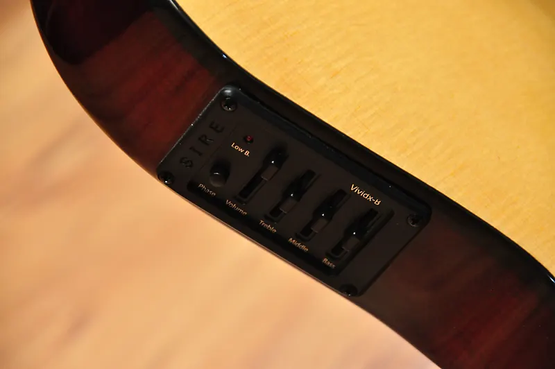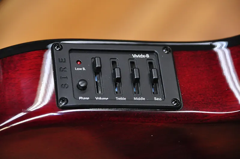 Это более типичный предусилитель для акустического баса. Он оснащен пьезозвукоснимателем под седлом, 3-полосным эквалайзером (Верхние, Средние, Басовые частоты) и переключателем фазы, позволяющим музыкантам настроить звук по своему вкусу.