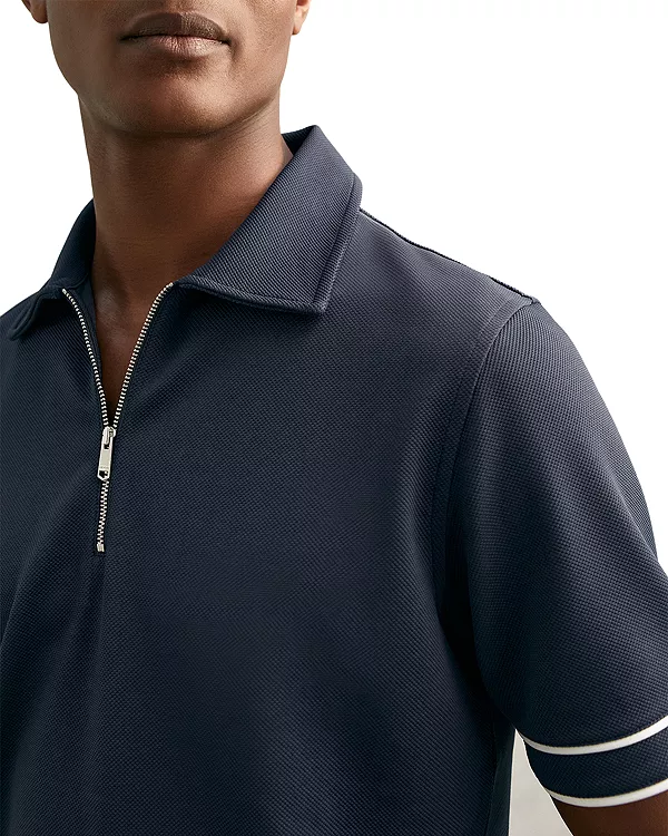 Текстурированная рубашка-поло на молнии Reiss, синий