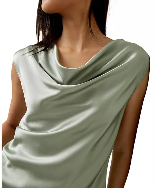 Бренд: Lilysilk Цвет: зеленый Собираетесь ли вы в отпуск или просто хотите выглядеть на все сто в офисе, этот топ с воротником-хомутом станет вашим лучшим выбором. Благодаря ниспадающему воротнику-хомуту, это гораздо больше, чем просто базовый топ без рукавов. Он изготовлен из 100% шелка шармез, что означает, что он не только терморегулирующий, но и невероятно дышащий. Слегка спущенные плечи придают ему элегантность, изысканность и универсальность, а также подчеркивают блеск и драпировку шелка.