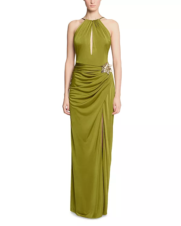 Платье Элин из глянцевого трикотажа Halston, зеленый
