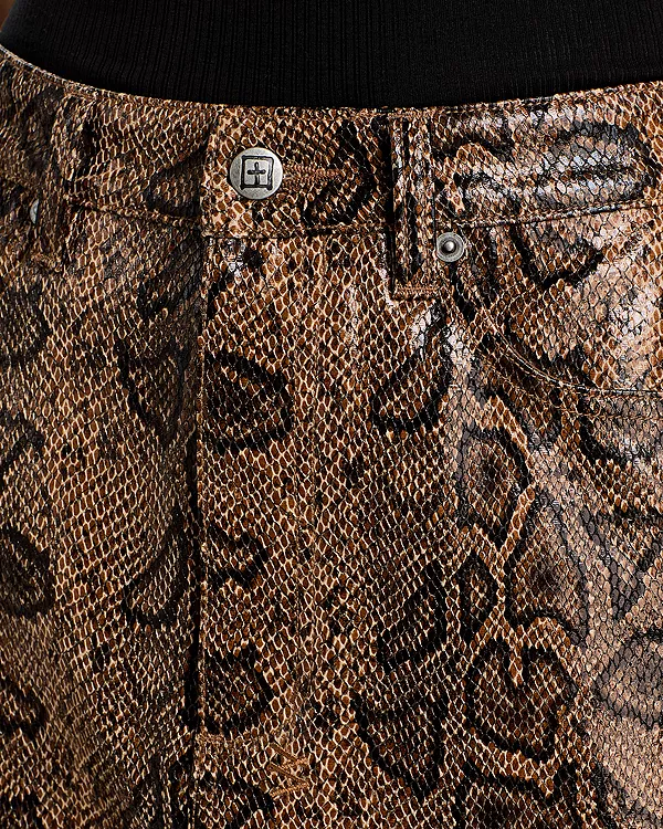 Эта мини-юбка с высокой талией и облегающим силуэтом выполнена из искусственной кожи с принтом под змеиную кожу. Классический дизайн с пятью карманами и фурнитурой от Ksubi дополнит образ рубашкой Astra Snakebite Shirt, чтобы создать завершенный образ с головы до ног.
