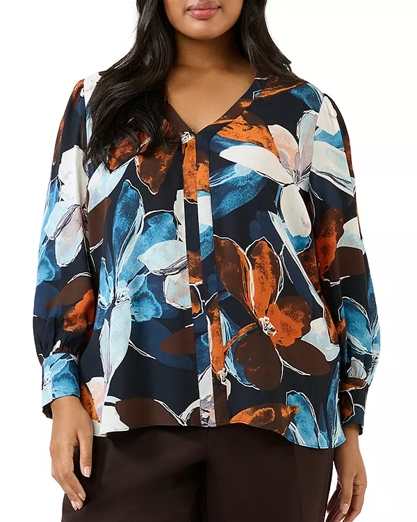 Рубашка с V-образным вырезом от Annette Estelle Plus, синий 15 309₽