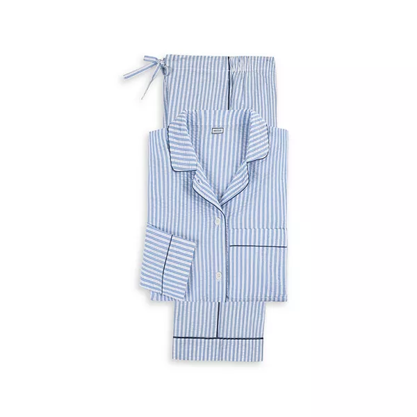Пижамный комплект Matteo из полосатой ткани сирсакер. Matouk, синий