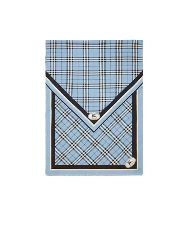 Прямоугольный шарф, изготовленный в Италии из шелкового твила с клетчатым узором Burberry. Дизайн обрамлен контрастными полосами и нашим фирменным знаком Knight, архивным мотивом, впервые появившимся на сумках Burberry в 1980-х годах.