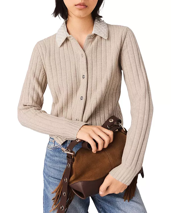 Кардиган со съемным воротником Maje, бежевый 46 028₽