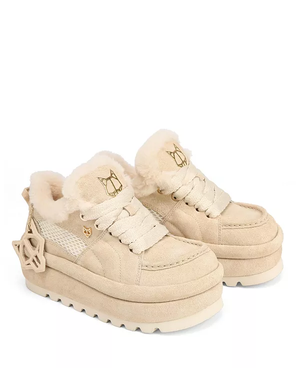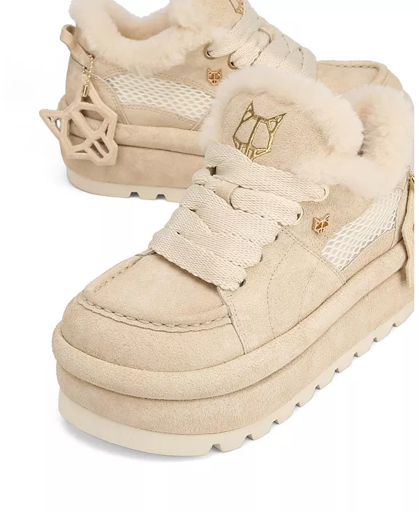 Особенности: Закругленный носок Шнуровка Шнурки шириной 15 мм | Асимметричная форма носка | Металлические люверсы | Высота платформы: 60 мм | Металлическая булавка в виде головы волка | Замша и сетка снаружи | Меховая подкладка | Кожаная стелька | Мягкая, легкая и упругая подошва | Съемная замшевая булавка в виде головы волка Импортный товар