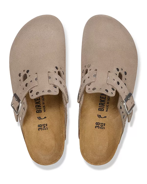 Благодаря неизменно высокому уровню комфорта, сабо Birkenstock Boston стали желанной обувью на все времена года. Металлические заклепки украшают классический замшевый верх, создавая привлекательный дизайн, а их точное расположение обеспечивает гладкую нижнюю часть для комфортного ношения.