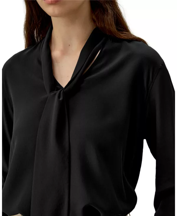 Шелковая блузка с бантом Lilysilk, черный